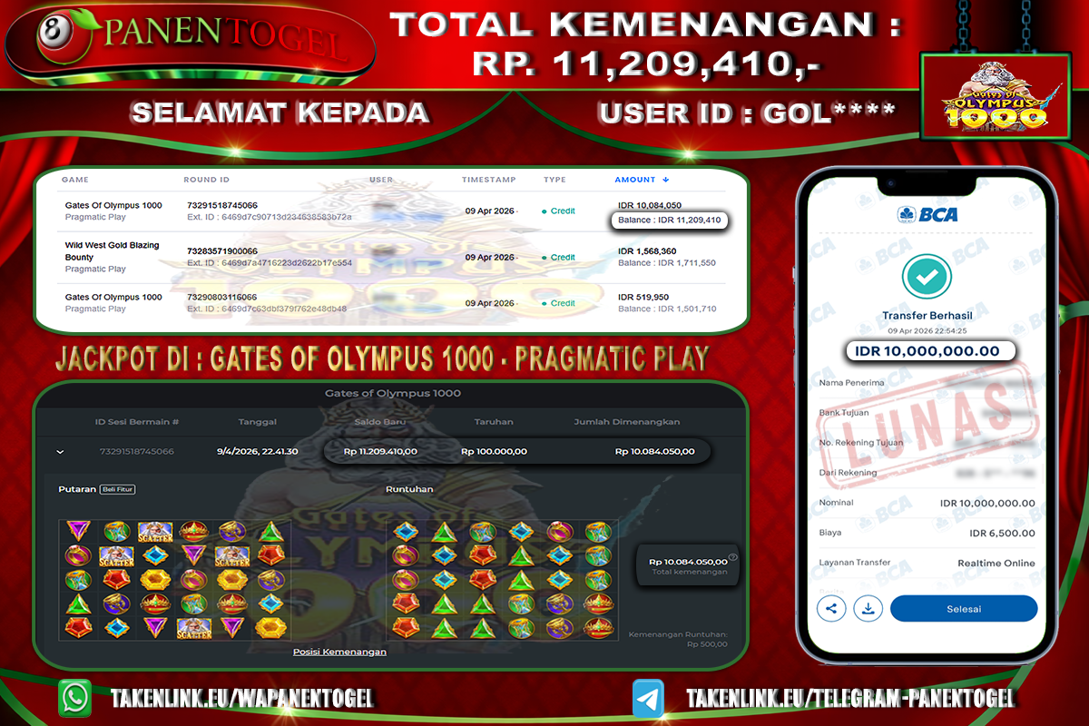 BUKTI KEMENANGAN SLOT PANENTOGEL Rp. 11.209.410, - LUNAS