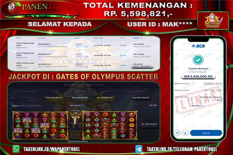 Selamat Kepada User ID : MAK**** Member PANENTOGEL JACKPOT GATES OF OLYMPUS SUPER SCATTER