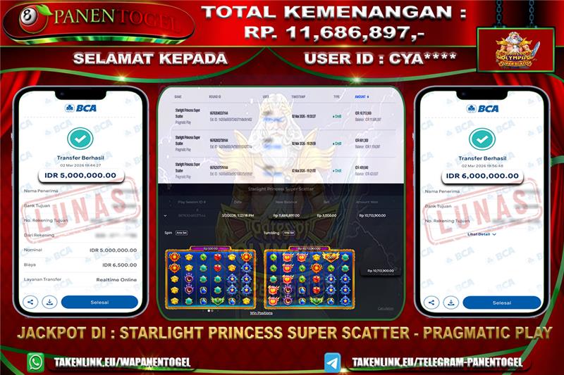 BUKTI KEMENANGAN SLOT PANENTOGEL Rp. 11.686.897, - LUNAS