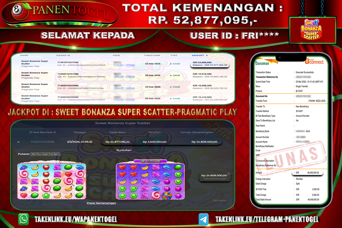 BUKTI KEMENANGAN SLOT PANENTOGEL Rp. 52.877.095, - LUNAS