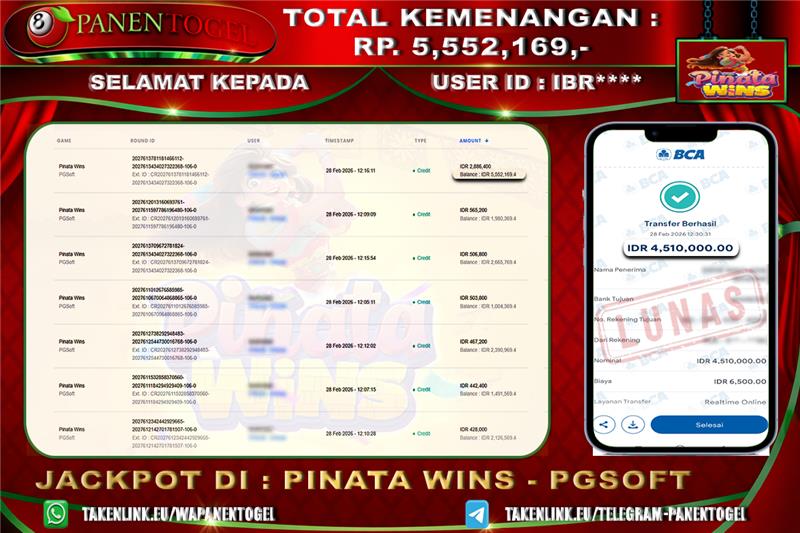 Selamat Kepada User ID : IBR**** Member PANENTOGEL JACKPOT PINATA WINS