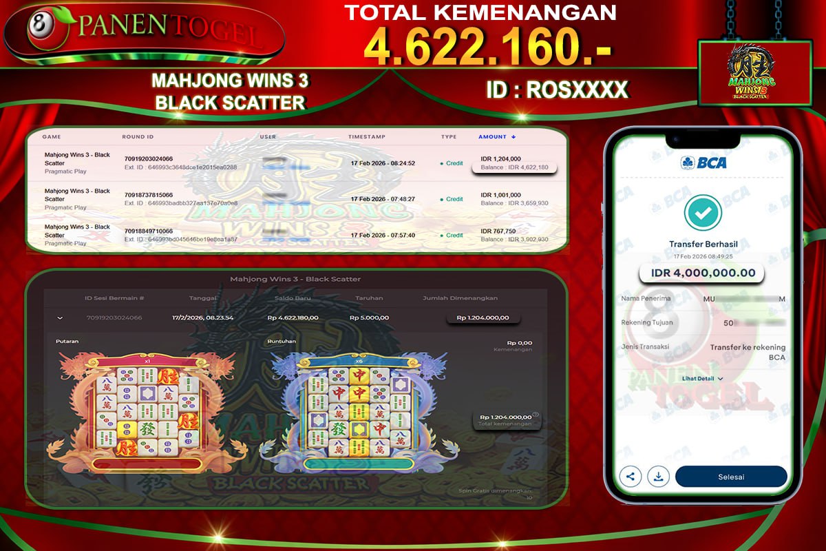 Selamat Kepada User ID : ROS*** Member PANENTOGEL MAHJONG WINS 3 BLACK SCATTER