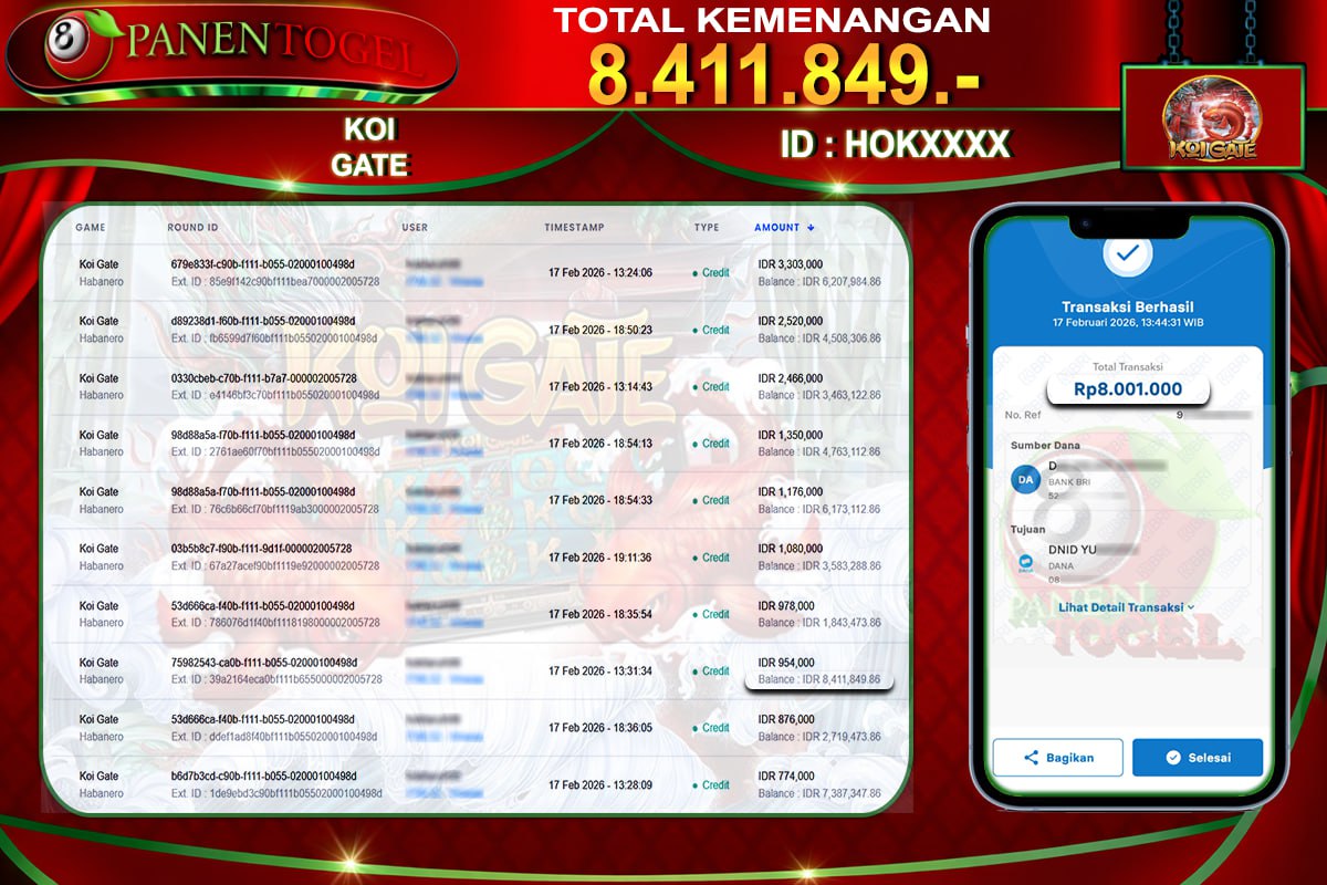 Selamat Kepada User ID : KAN*** Member PANENTOGEL JACKPOT KOI GATE