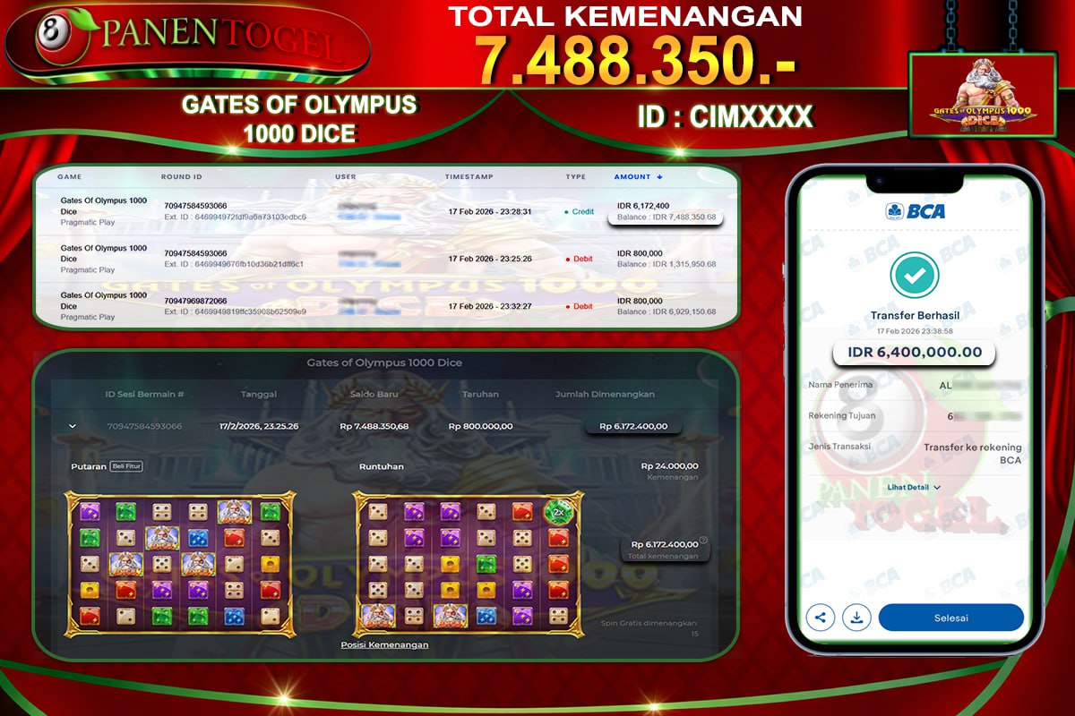 Selamat Kepada User ID : CIM**** Member PANENTOGEL JACKPOT GATE OF OLYMPUS 1000 DICE