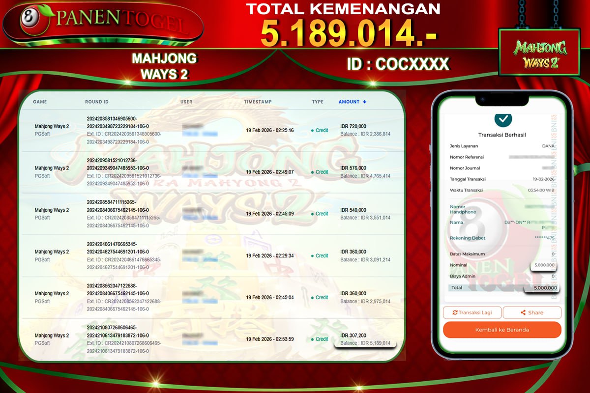 Selamat Kepada User ID : COC***** Member PANENTOGEL JACKPOT MAHJONG WAYS 2