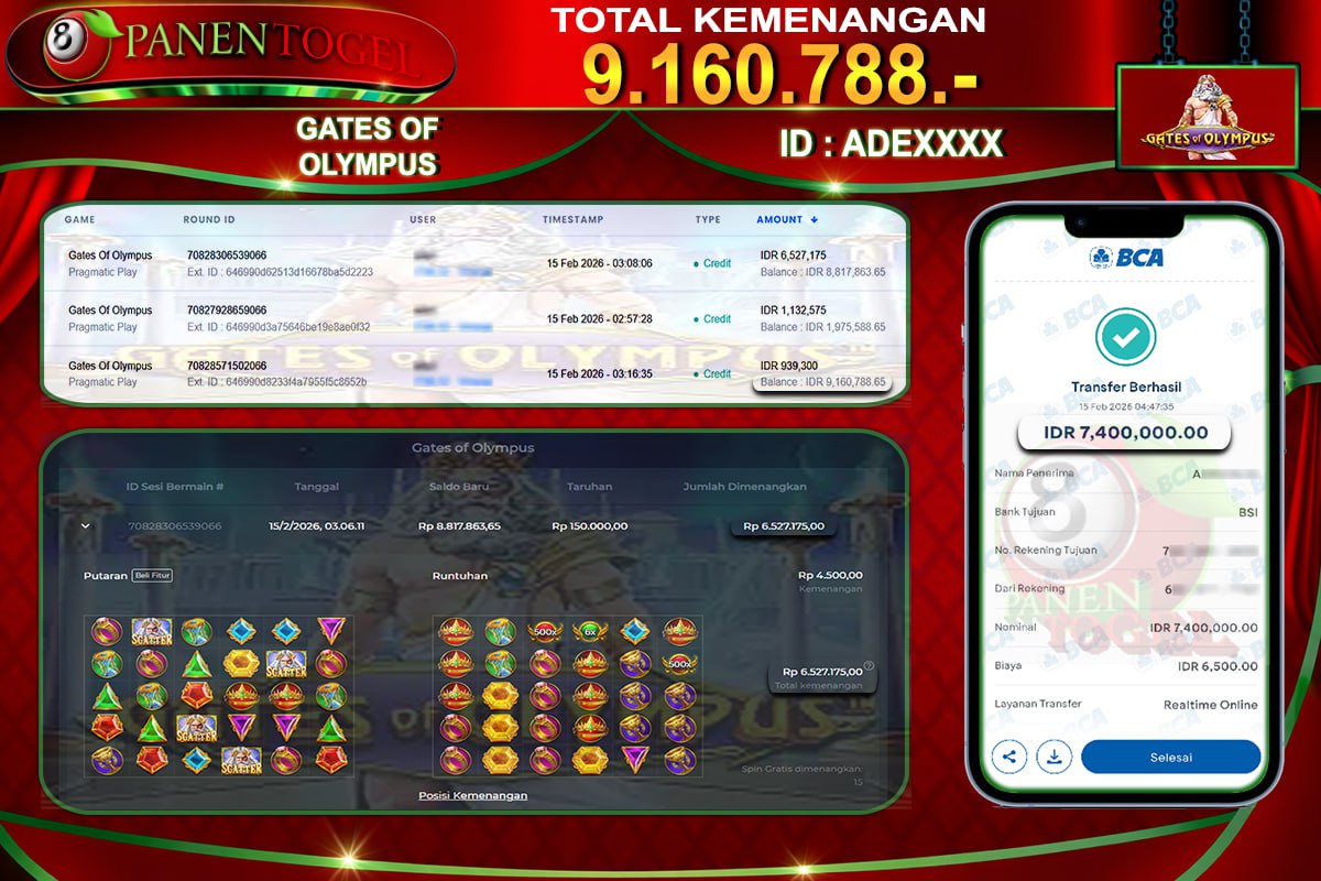 Selamat Kepada User ID : BIA**** Member PANENTOGEL JACKPOT GATES OF OLYMPUS