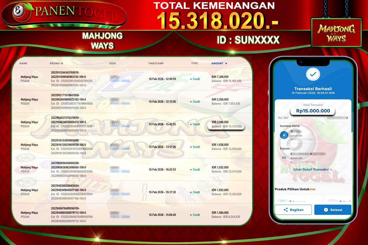 BUKTI KEMENANGAN SLOT PANENTOGEL Rp. 15.318.020, - LUNAS
