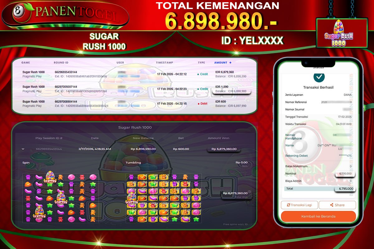 Selamat Kepada User ID : YEL*** Member PANENTOGEL SUGAR RUSH 1000