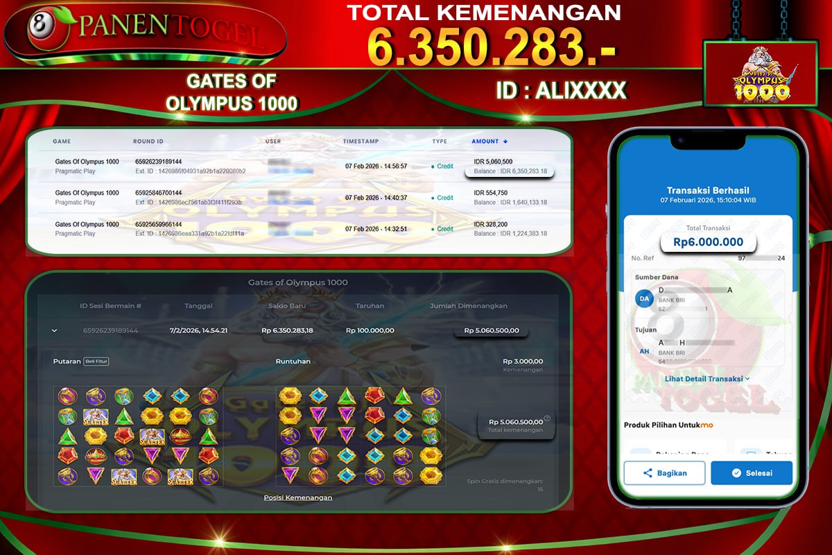 Selamat Kepada User ID : ALI**** Member PANENTOGEL JACKPOT GATES OF OLYMPUS 1000