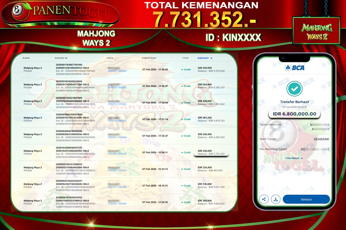 BUKTI KEMENANGAN SLOT PANENTOGEL Rp. 7.731.352, - LUNAS
