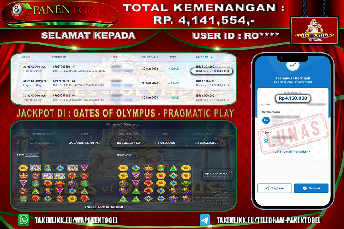 BUKTI KEMENANGAN SLOT PANENTOGEL Rp. 4.141.554, - LUNAS